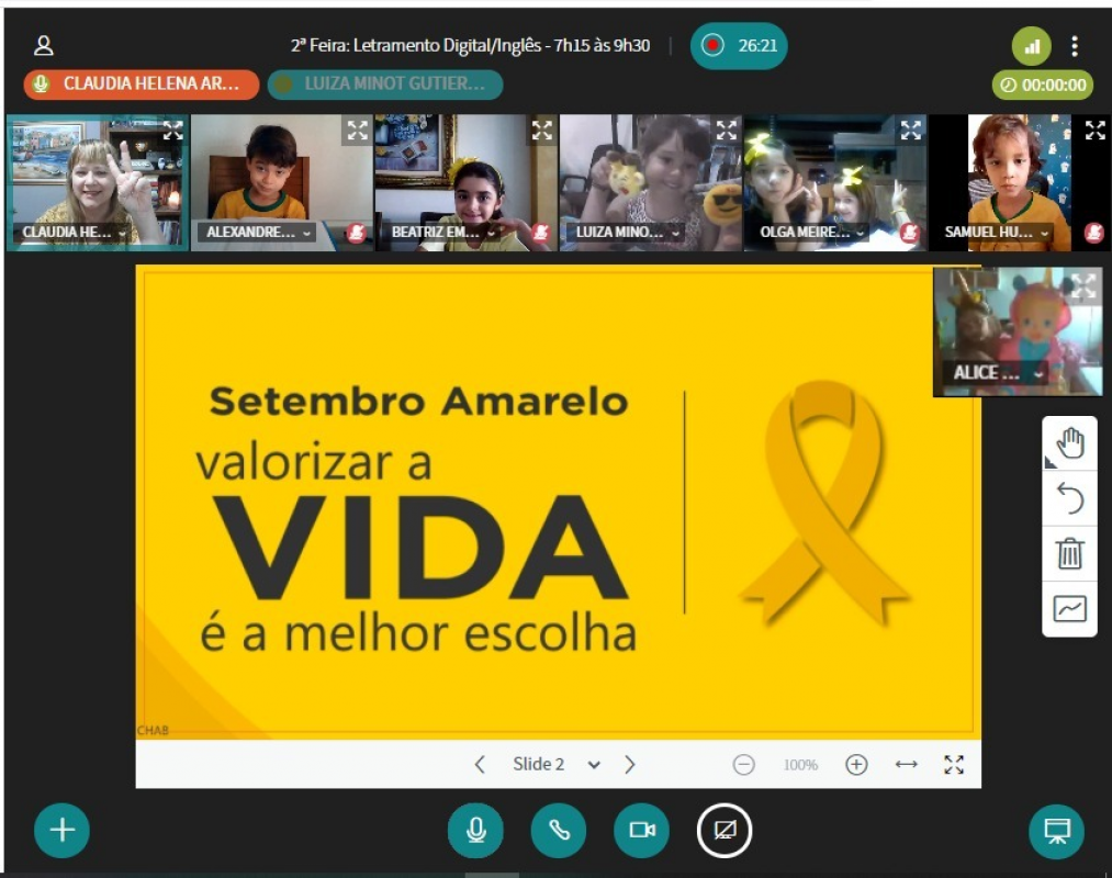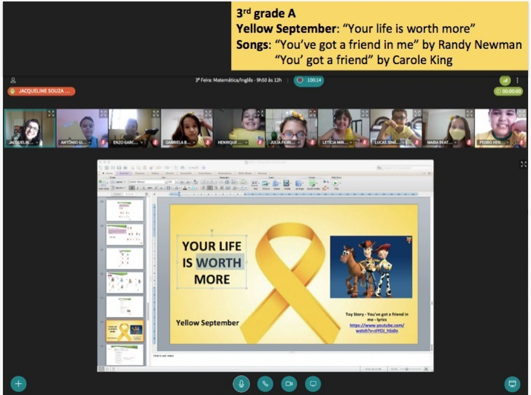 O Ateneu Barão de Mauá apoia essa causa e vem desenvolvendo diversas atividades on-line com os alunos. Incentivo para que todos estejam nas aulas vestidos com camisetas amarelas, apresentação musical com a professora Karina Fernandes, nuvem de palavras motivacionais, poemas, redação com tema valorativo e até aula de educação socioemocional. A iniciativa conta com o apoio da Escola da Inteligência.